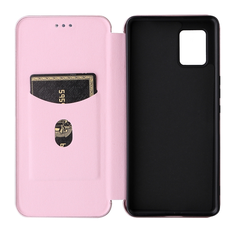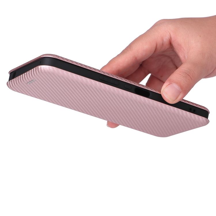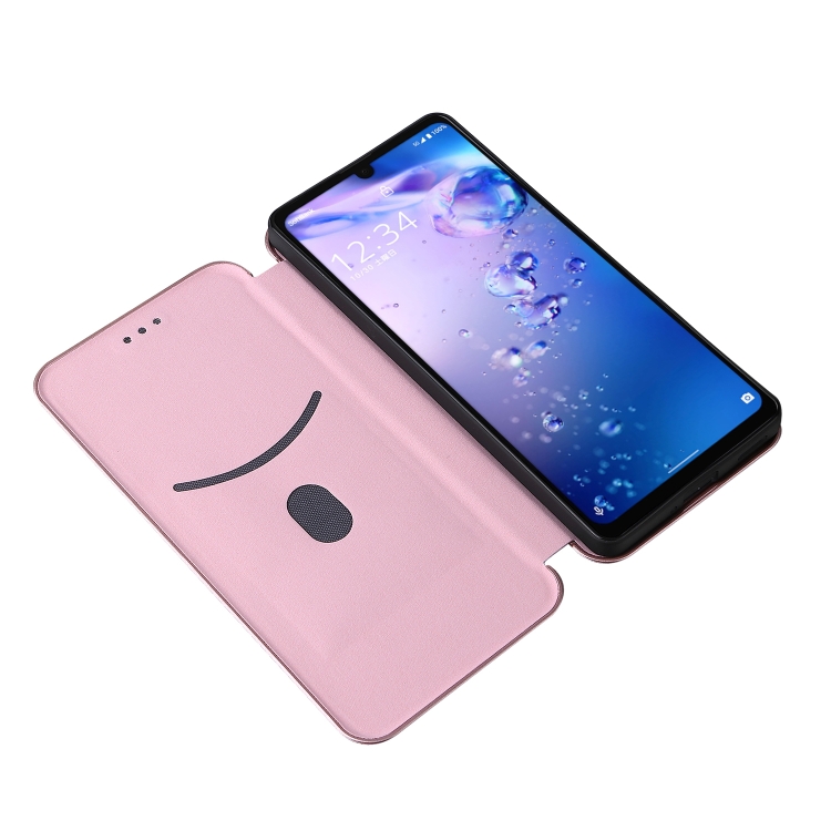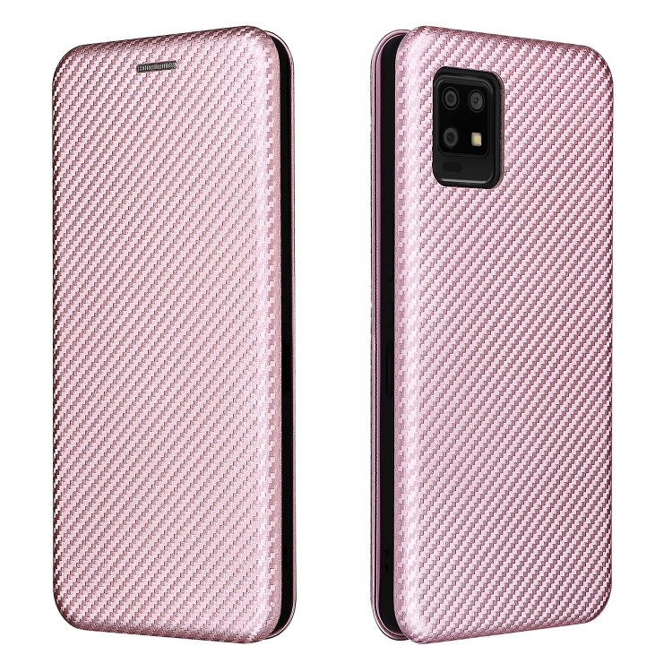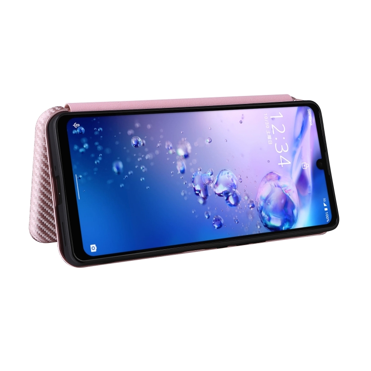 Funda para Sharp Aquos Zero6 Fibra de Carbono Magnético Horizontal Flip TPU + PC + Cuero PU con Ranura para Tarjeta (Rosa)