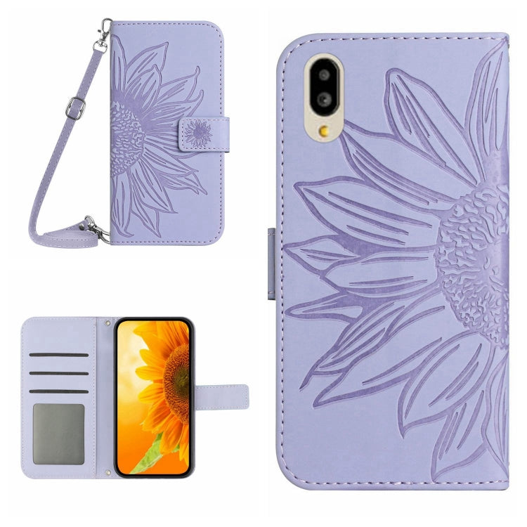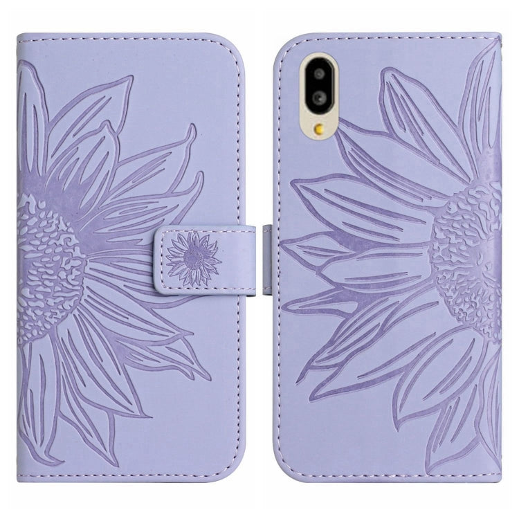 Funda Flip de Cuero para Sharp Simple Sumaho 6 con Cordón y Diseño Sun Flower (Púrpura)