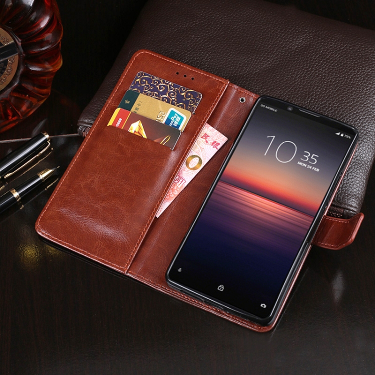 Para Sony Xperia 1 II idewei Crazy Horse Texture Funda de cuero con tapa horizontal con soporte, ranuras para tarjetas y billetera (rosa roja)