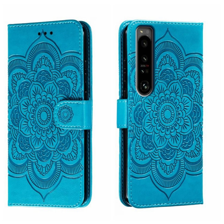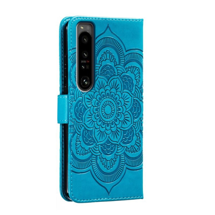 Funda de Cuero para Sony Xperia 1 IV con Patrón Sun Mandala en Relieve (Azul)