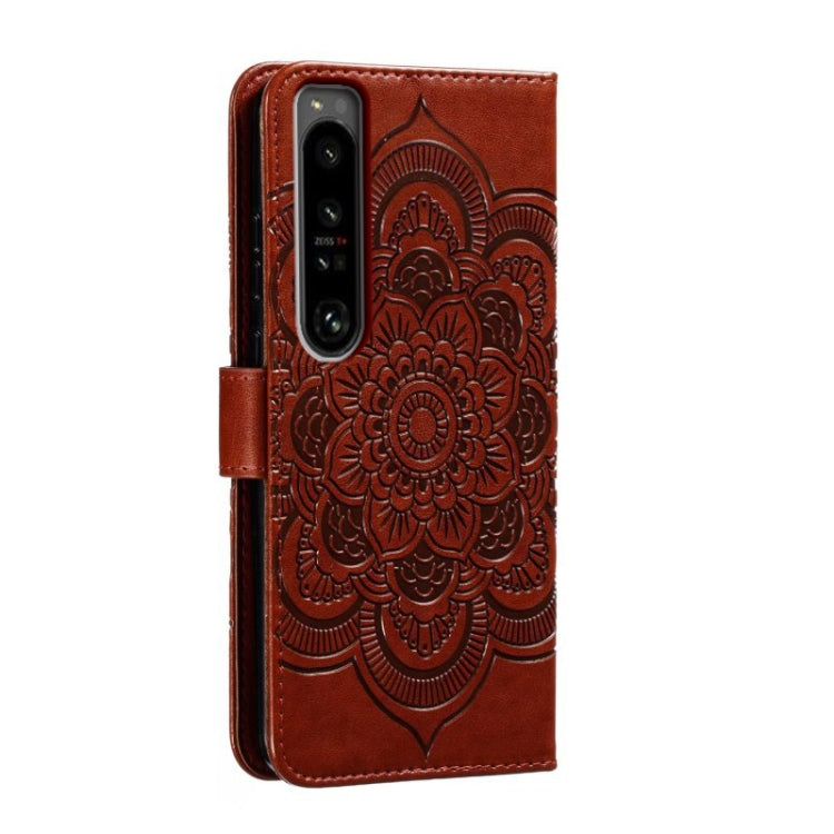 Funda de Cuero para Sony Xperia 1 IV con Patrón En Relieve Sun Mandala (Marrón)