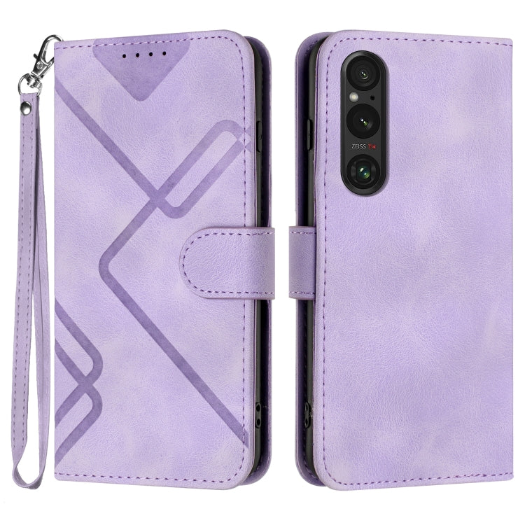 Funda de Cuero para Sony Xperia 1 V (2023) con Sensación de Piel y Patrón de Líneas (Púrpura Claro)