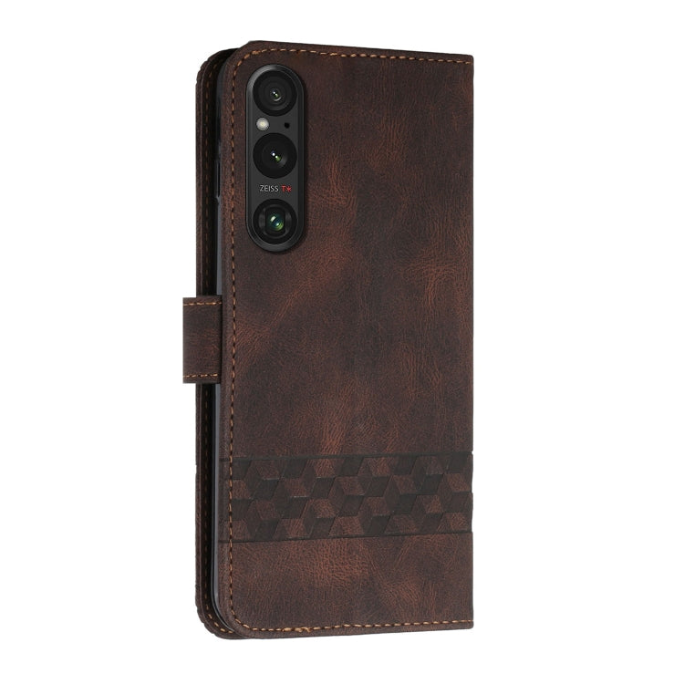 Funda para Sony Xperia 1 V (2023) de Cuero con Tapa Cubic Skin Feel (Marrón)
