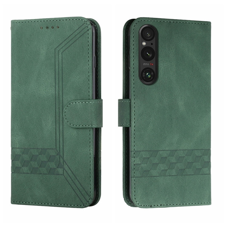 Funda para Sony Xperia 1 V (2023) de Cuero con Tapa Cubic Skin Feel (Verde)