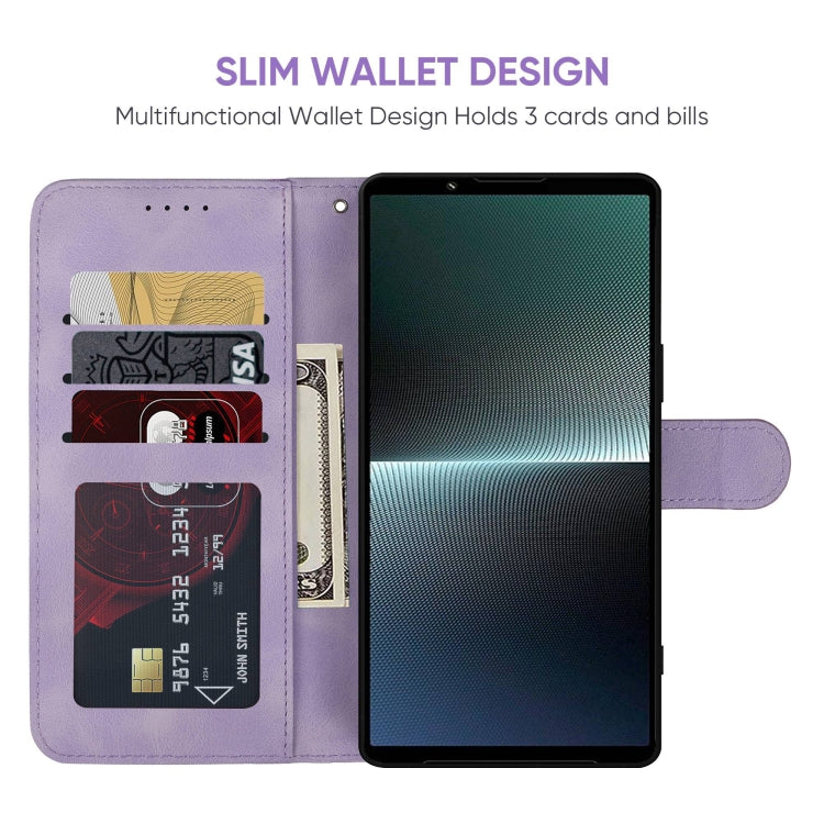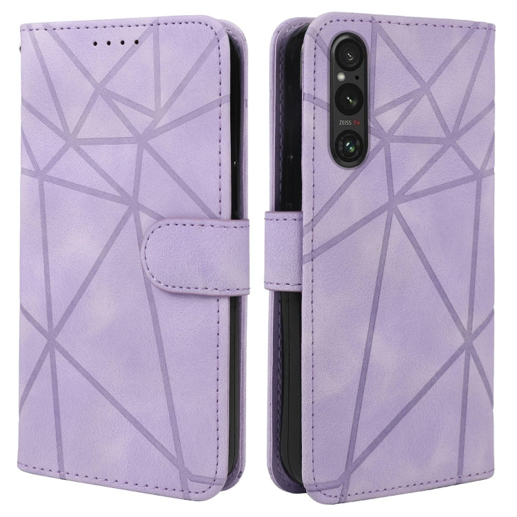 Funda de Cuero para Sony Xperia 1 V (2023) Skin Feel con Líneas Geométricas (Púrpura)