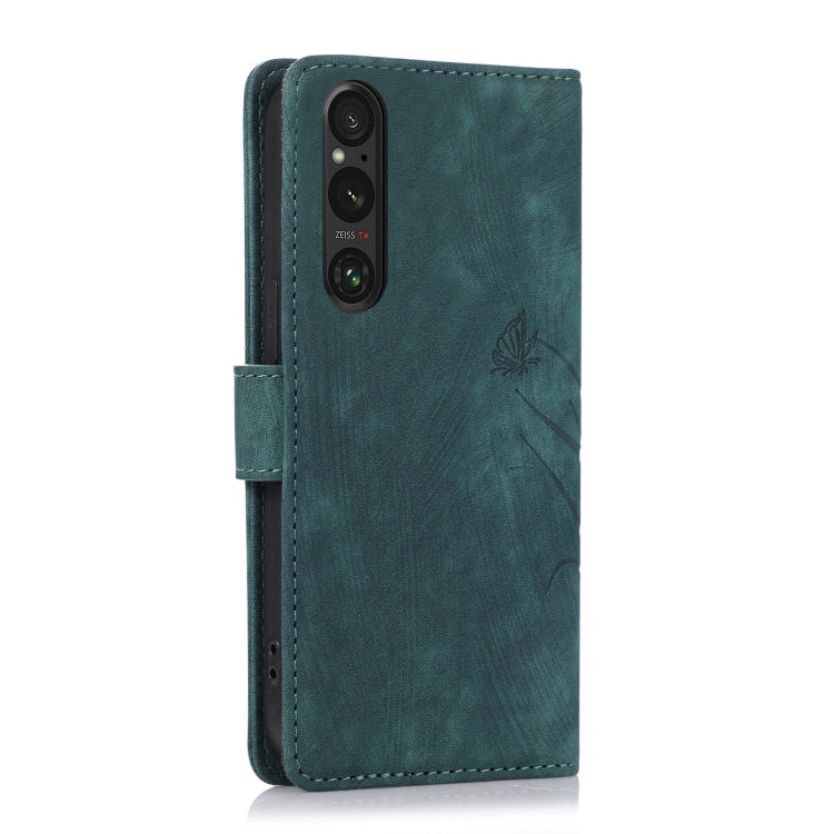 Funda para Sony Xperia 1 V 5G (2023) de Cuero con Relieve Mariposa Orquídea (Verde)