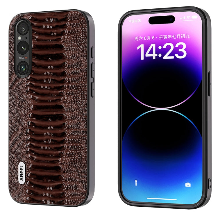 Funda para Sony Xperia 1 V Abeel Serie Weilai Cuero Genuino (Café)