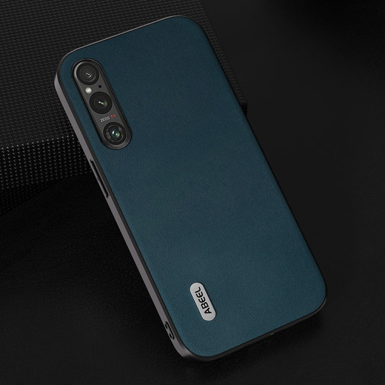 Funda para Sony Xperia 1 V Abeel Serie Xiaoya Cuero Genuino (Verde Oscuro)