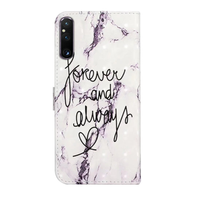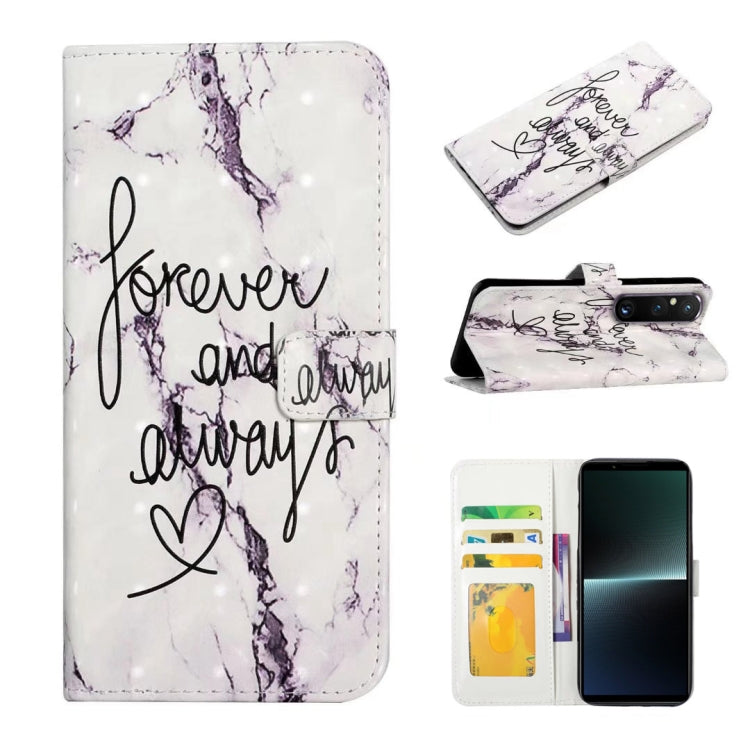 Funda de Cuero para Sony Xperia 1 V con Dibujo 3D en Relieve al Óleo (Palabras de Mármol)