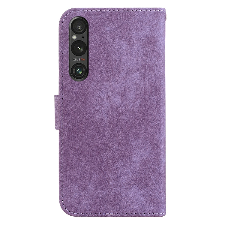 Funda de Cuero para Sony Xperia 1 V con Relieve Little Tiger (Púrpura)