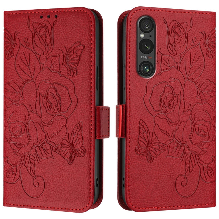 - 1x Funda de Cuero Antirrobo RFID para Sony Xperia 1 V con Relieve (Rojo)