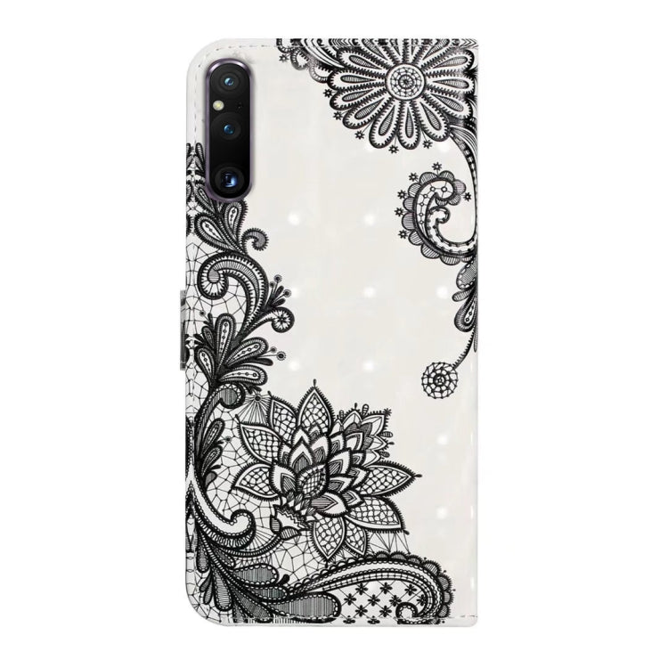 Funda de cuero para Sony Xperia 1 V con dibujo 3D en relieve al óleo (Flor de Encaje)