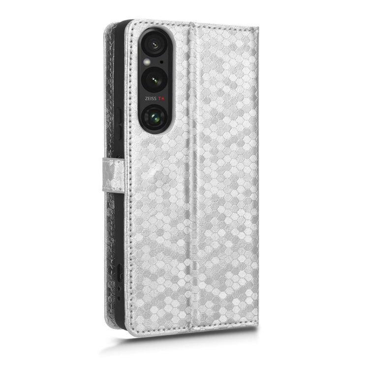 Funda de Cuero para Sony Xperia 1 V Honeycomb Dot Texture (Plata)