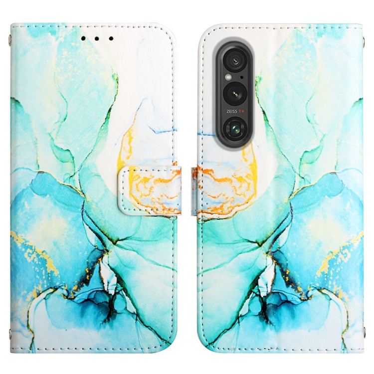 Funda de Cuero con Tapa para Sony Xperia 1 V Pt003 Patrón Mármol (Verde)
