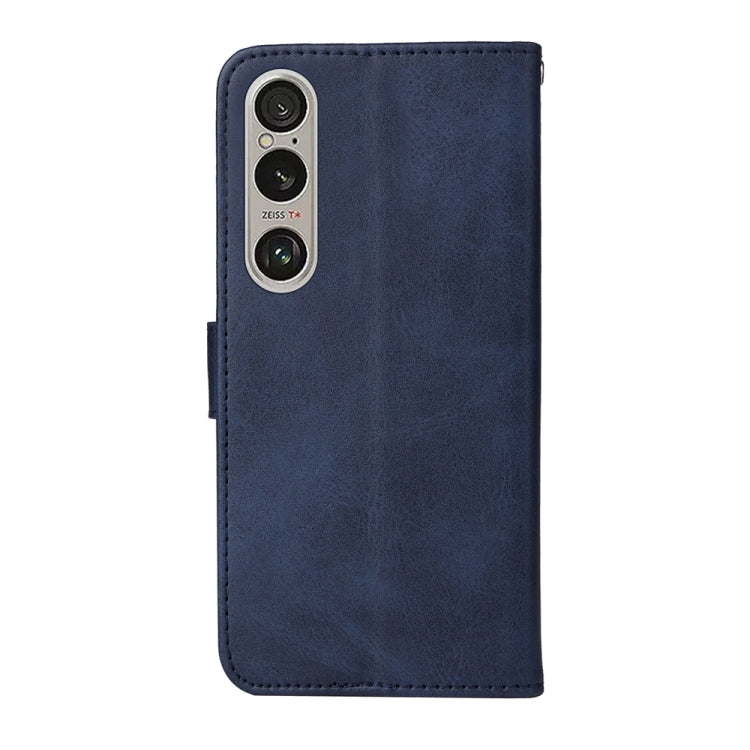 - 1x Funda de Cuero con Tapa para Sony Xperia 1 Vi Classic con Textura de Becerro (Azul)