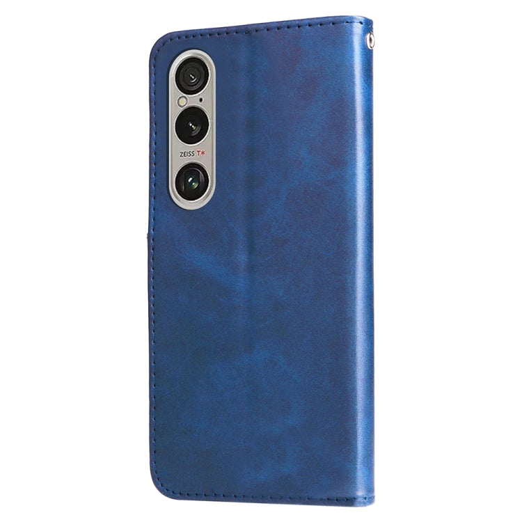 - 1x Funda para Sony Xperia 1 Vi de Cuero con cremallera y textura de becerro (Azul)