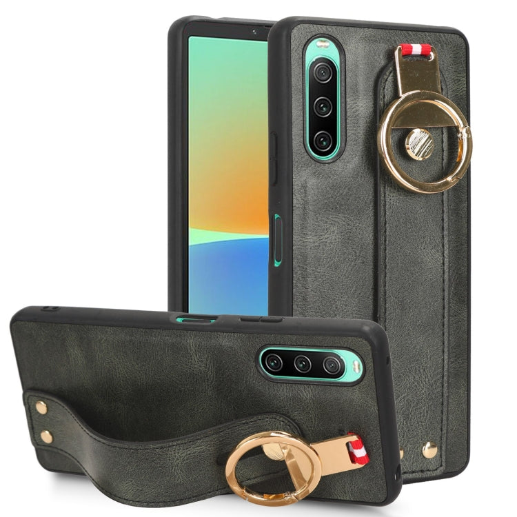 Funda Trasera de Cuero para Sony Xperia 10 III con Muñequera (Verde)