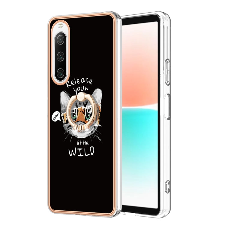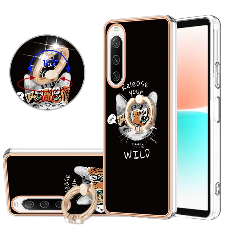 Estuche para Sony Xperia 10 IV IMD Doble Cara con Galvanoplastia y Soporte para Anillo (Crecimiento Natural)