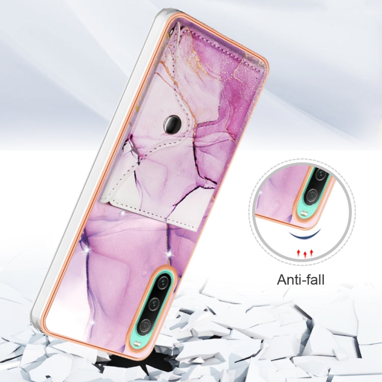 Estuche para Sony Xperia 10 IV con Ranura para Tarjeta y Patrón Mármol (Oro Rosa Púrpura)