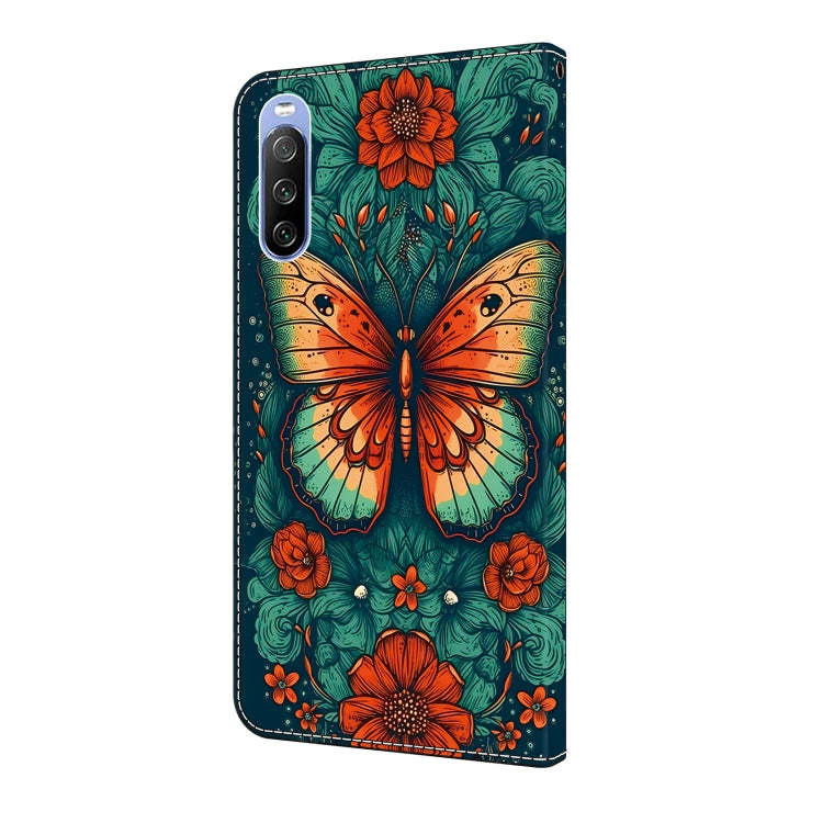 Funda de Cuero para Sony Xperia 10 IV con Cristal Pintado Mariposa de Flores