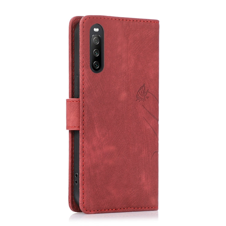 Funda para Sony Xperia 10 IV Cuero con Relieve Mariposa Orquídea (Rojo)