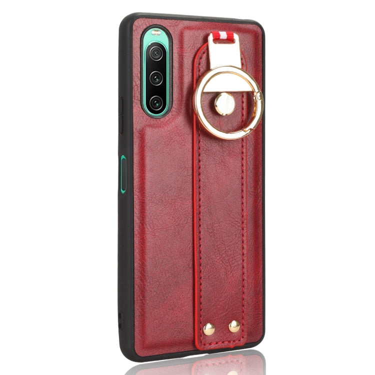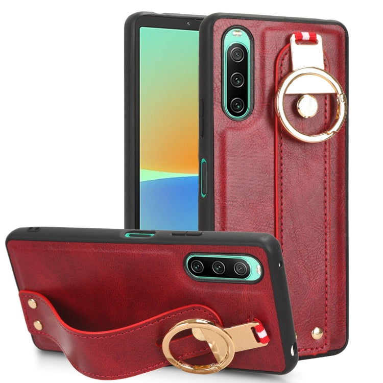 Funda Trasera de Cuero para Sony Xperia 10 IV con Muñequera (Rojo)