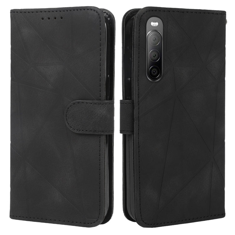 Funda de Cuero para Sony Xperia 10 IV Skin Feel con Líneas Geométricas (Negro)