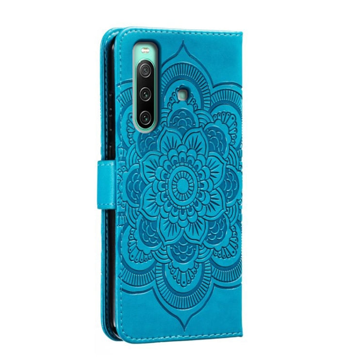 Funda de Cuero para Sony Xperia 10 IV con Patrón Sun Mandala en Relieve (Azul)