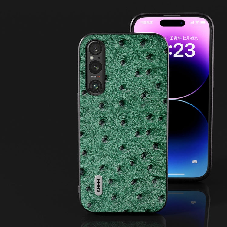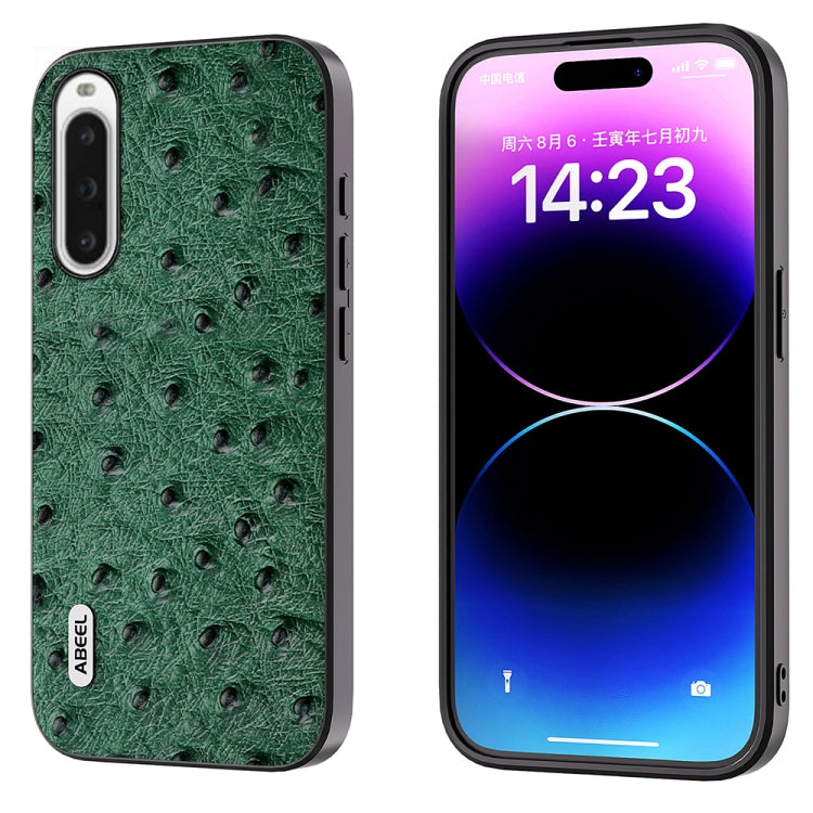 Funda para Sony Xperia 10 V Abeel Cuero Genuino Textura Avestruz (Verde)