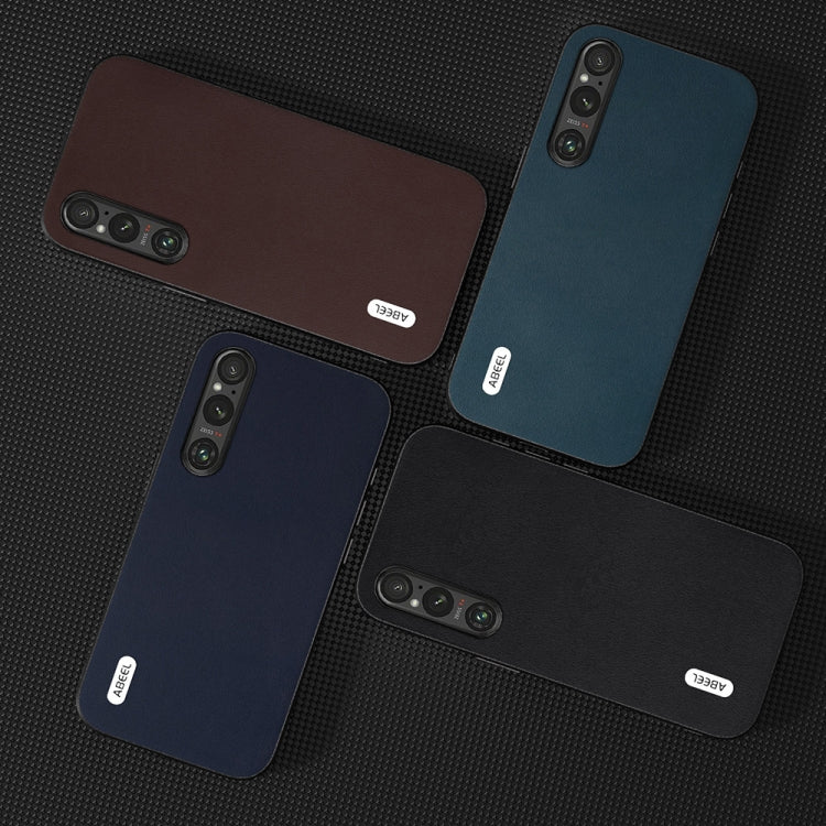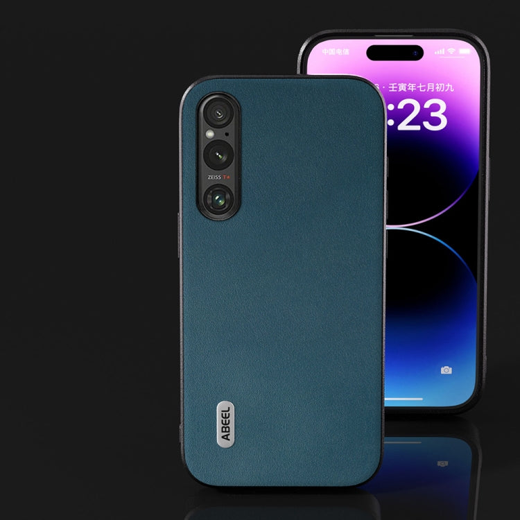 Funda para Sony Xperia 10 V Abeel Serie Xiaoya Cuero Genuino (Verde Oscuro)