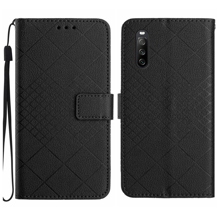 Funda de Cuero para Sony Xperia 10 V con Textura de Rejilla Rómbica (Negro)