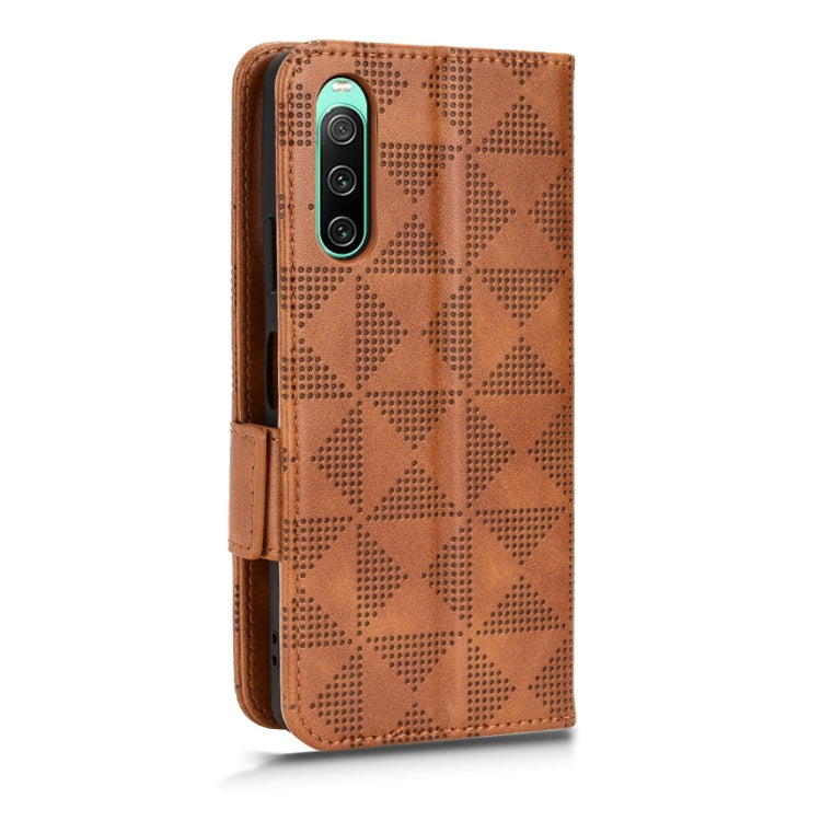 Funda de Cuero para Sony Xperia 10 V con Patrón Triángulo Simétrico (Marrón)