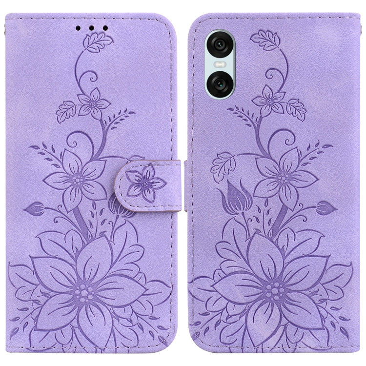 Funda de Cuero para Sony Xperia 10 Vi con Relieve Lily (Púrpura)