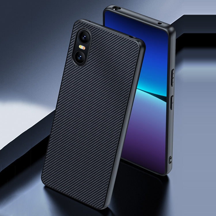 Funda Ultrafina para Sony Xperia 10 Vi con Textura de Fibra de Carbono (Negro Amarillo)