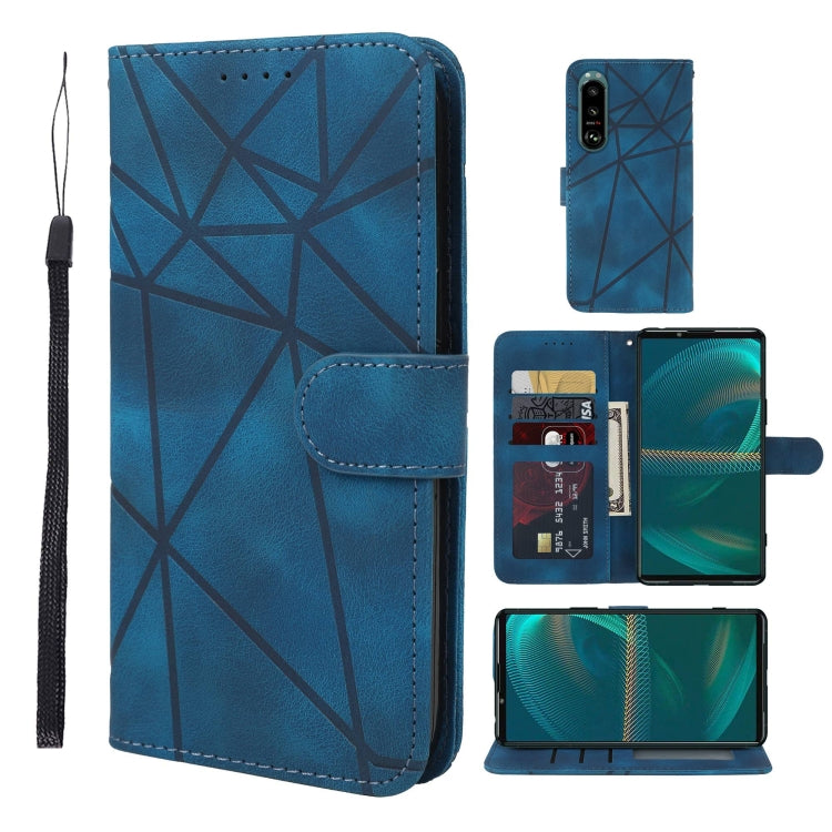 Funda de Cuero para Sony Xperia 5 III Skin Feel con Líneas Geométricas (Azul)