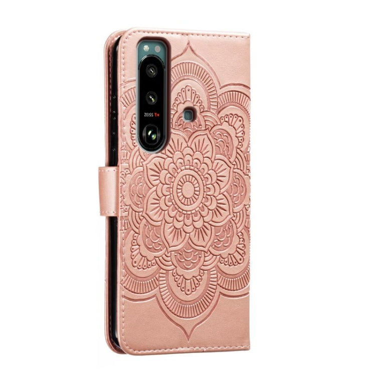 Funda de Cuero para Sony Xperia 5 III con Patrón Sun Mandala en Relieve (Oro Rosa)