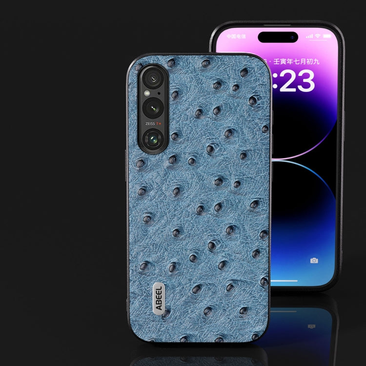 Funda para Sony Xperia 5 IV Abeel Cuero Genuino Textura Avestruz (Azul)