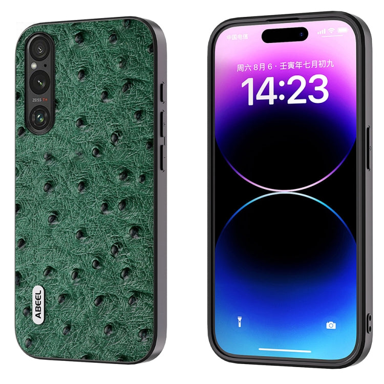 Funda para Sony Xperia 5 IV Abeel Cuero Genuino Textura Avestruz (Verde)