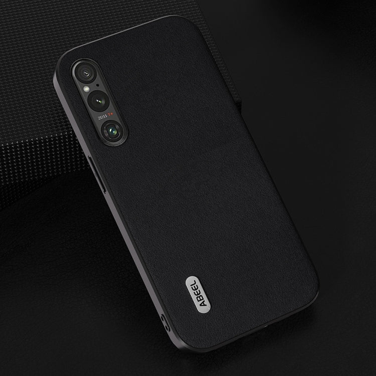 Funda para Sony Xperia 5 IV Abeel Serie Xiaoya Cuero Genuino (Negro)