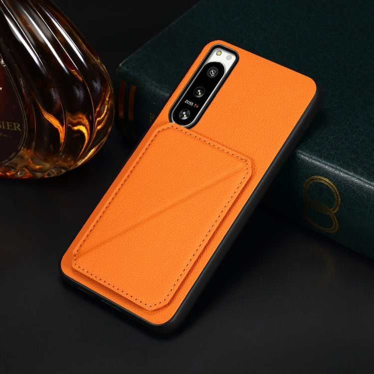 Funda para Sony Xperia 5 IV D04 con Ranura para Tarjeta Dual y Textura de Becerro (Naranja)