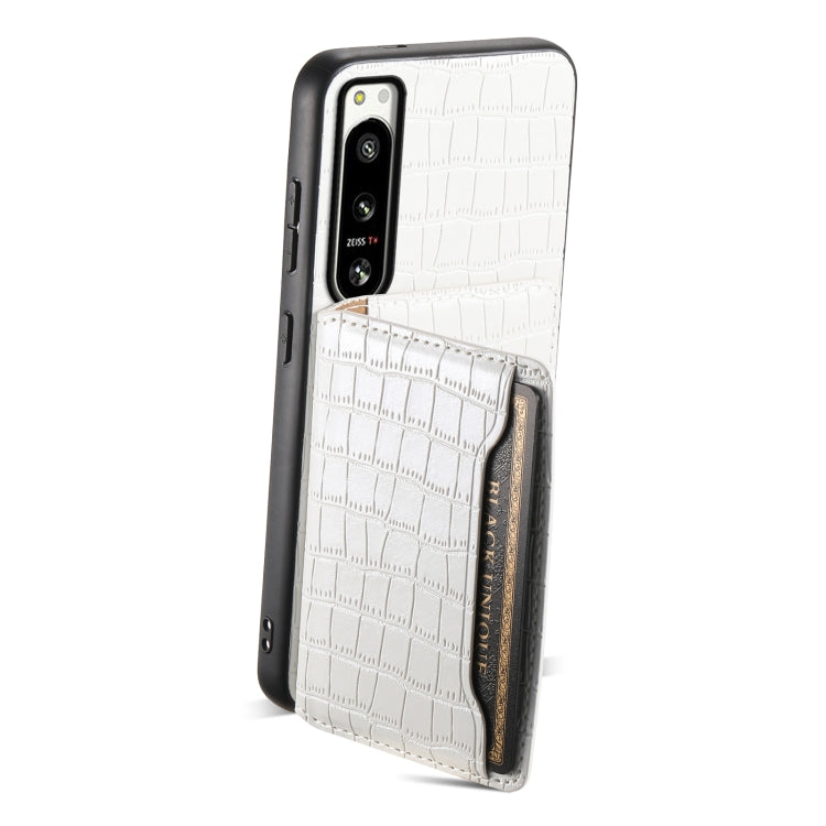Estuche para Sony Xperia 5 IV con Diseño Bolsa para Tarjetas Textura Cocodrilo (Blanco)