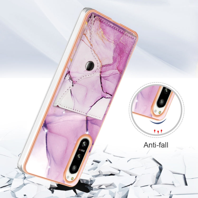 Estuche para Sony Xperia 5 IV con Ranura para Tarjeta IMD y Patrón Mármol (Oro Rosa Púrpura)