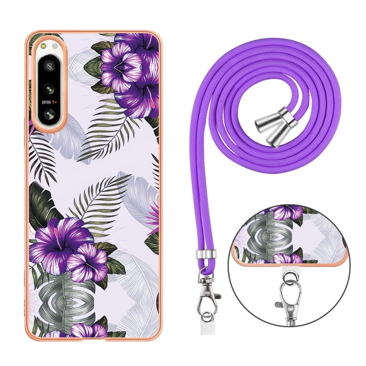 Funda TPU para Sony Xperia 5 IV con Galvanoplastia IMD y Cordón (Flor Púrpura)