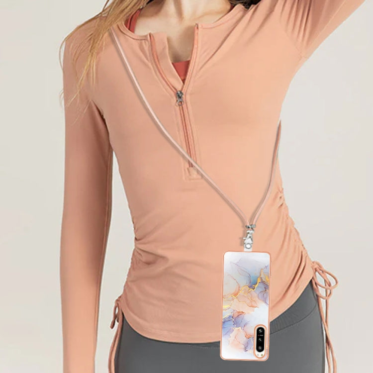 Funda TPU Galvanoplastia IMD para Sony Xperia 5 IV con Cordón (Mármol Blanco)