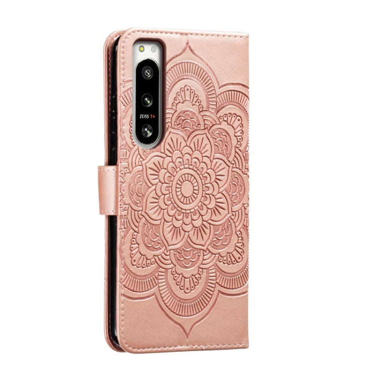 Funda de Cuero para Sony Xperia 5 IV con Patrón En Relieve Sun Mandala (Oro Rosa)