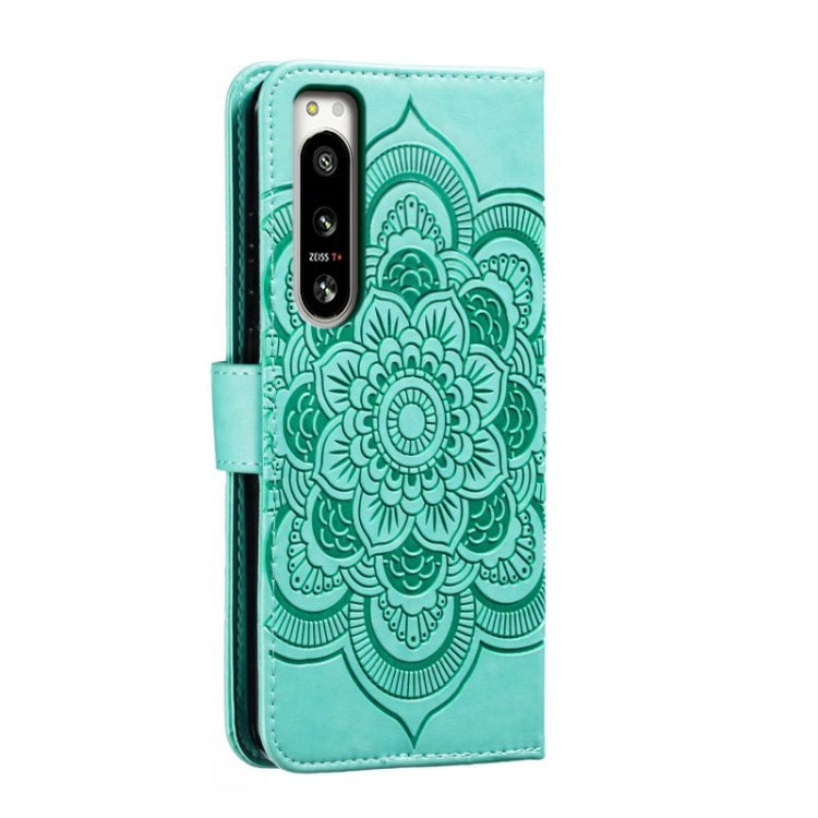 Funda de Cuero para Sony Xperia 5 IV con Patrón Sun Mandala en Relieve (Verde)