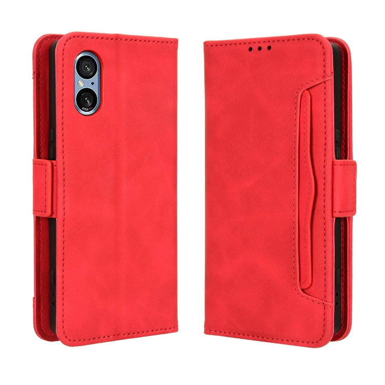 Funda de Cuero para Sony Xperia 5 V (2023) Skin Feel Becerro con Ranuras para Tarjetas (Rojo)