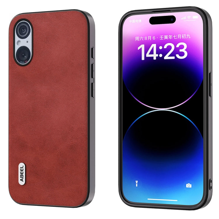 Funda para Sony Xperia 5 V Abeel de PU con Textura de Becerro y Dos Colores (Rojo)