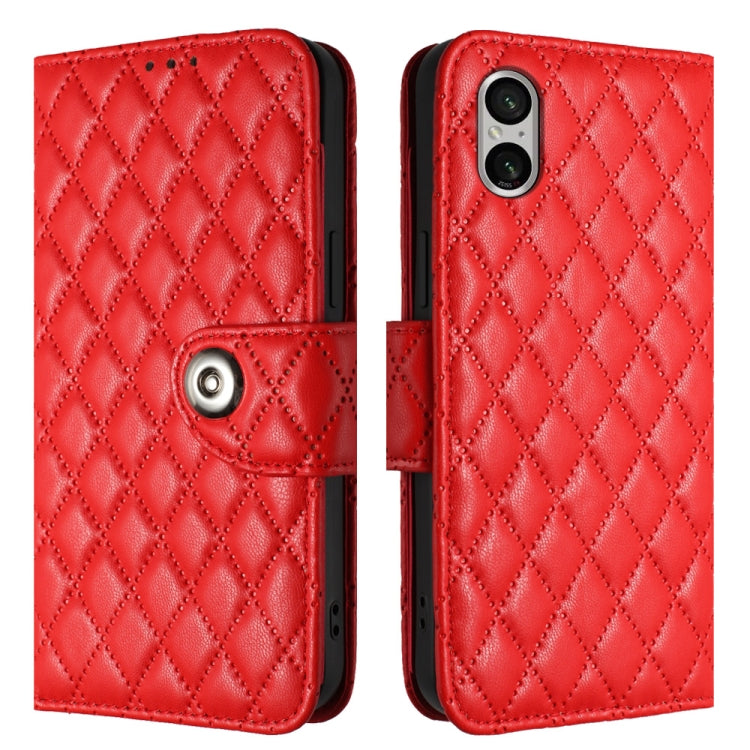 Funda de Cuero para Sony Xperia 5 V con Tapa Textura Rómbica y Cordón (Rojo)
