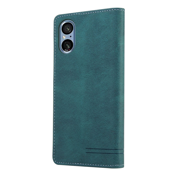 Funda de Cuero para Sony Xperia 5 V Skin Feel con Tapa Horizontal, Cepillo Antirrobo y Soporte (Azul)